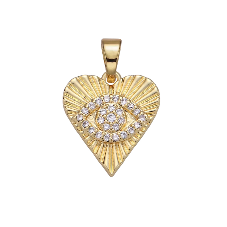 Heart Shape Evil Eye Charm - Gold Filled