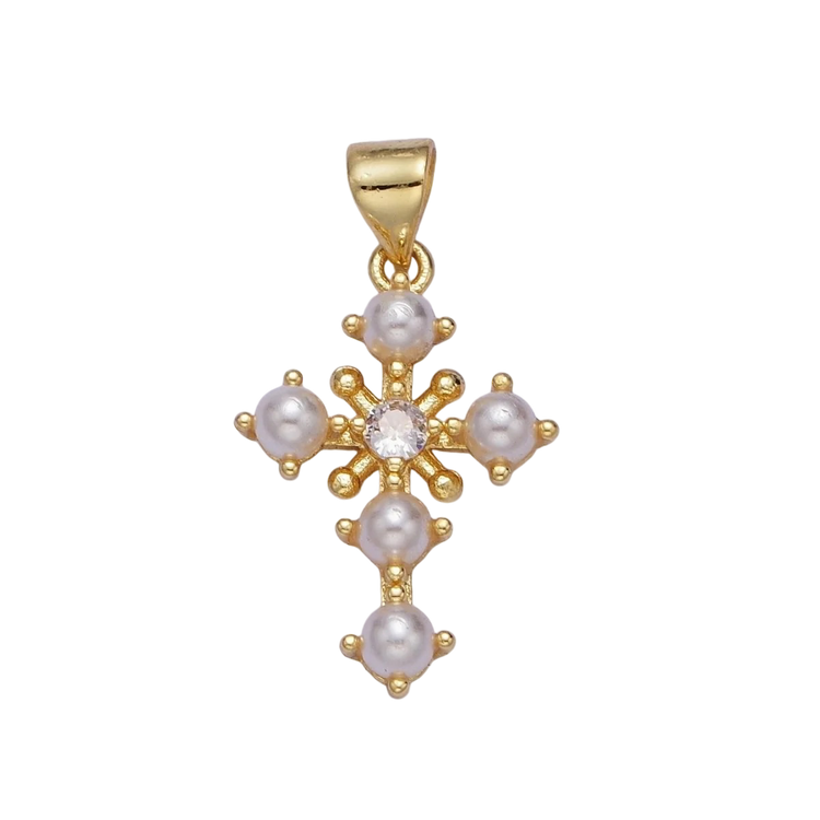 Pearl Cross Charm - Gold Filled