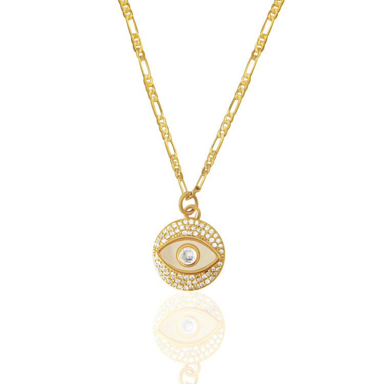 Pearl Diamond Evil Eye Necklace - Gold Filled