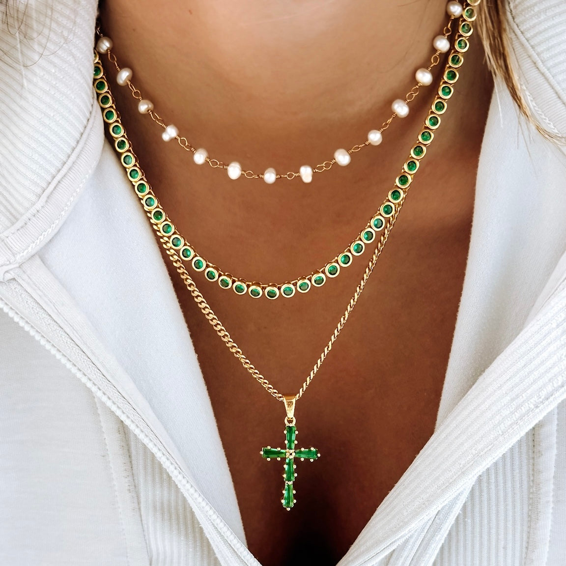 Green Diamond Tennis Chain Necklace - Gold Filled