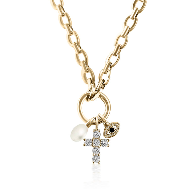 Diamond Cross & Evil Eye Necklace - Gold Filled