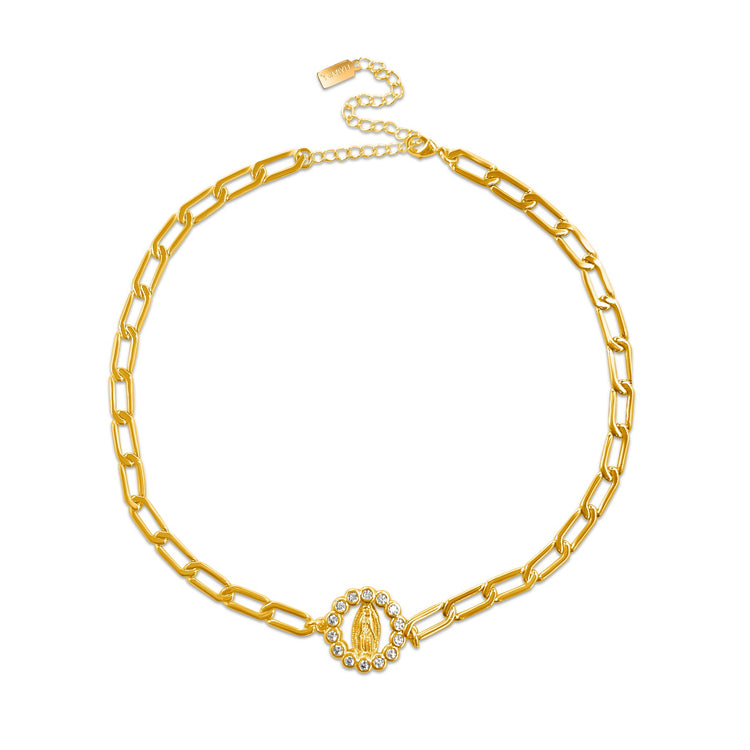Diamond Virgin Mary Choker - Gold Filled