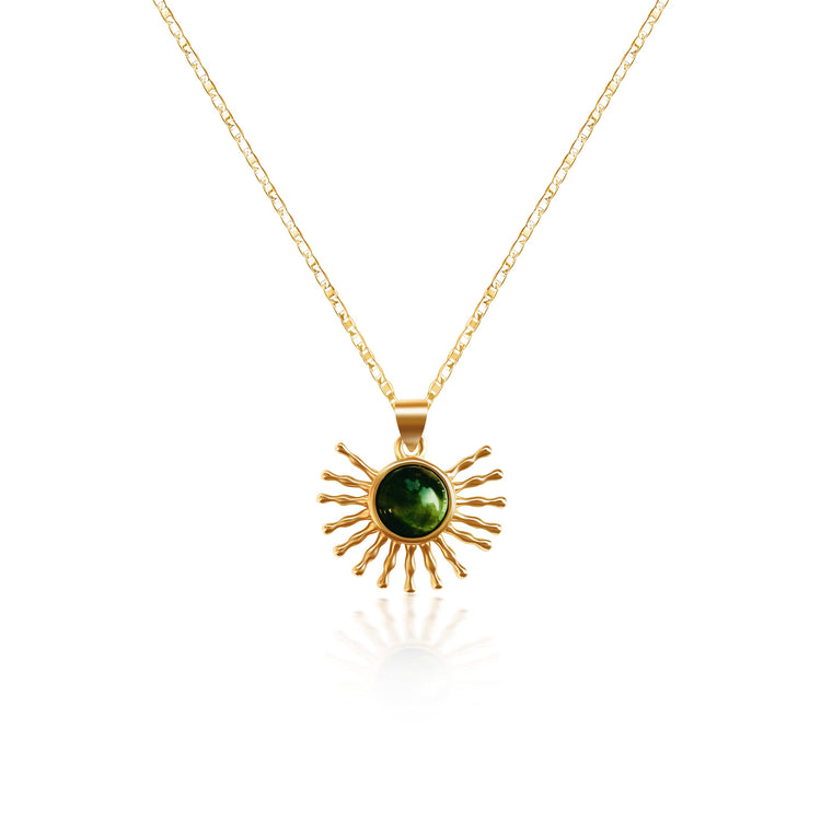 Green Sunburst Necklace - Gold Filled
