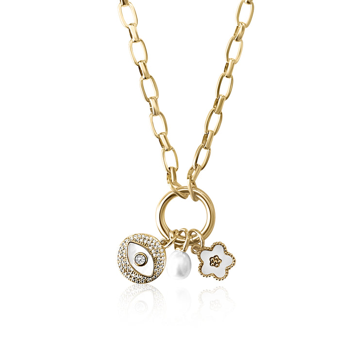 Pearl Flora & Evil Eye Necklace - Gold Filled