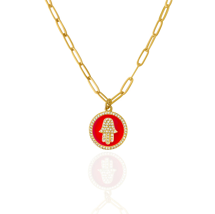 Wise Guidance Hamsa Hand Necklace (Red) - Gold Filled