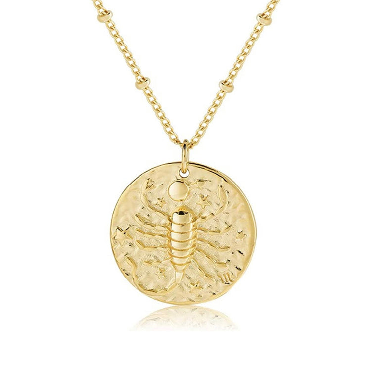 Our Double Side Zodiac Necklace celebrates your unique astrological sign and birth placement, making it the perfect way to add a personalized touch to your look or give it to any loved one. A textured medallion pendant suspended from a small ring bail complements the station bead cable chain, exuding an antique influence.