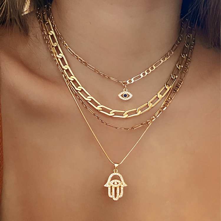 The Evil Eye set is the go-to necklace set when it comes to protection and ultimate glamour.