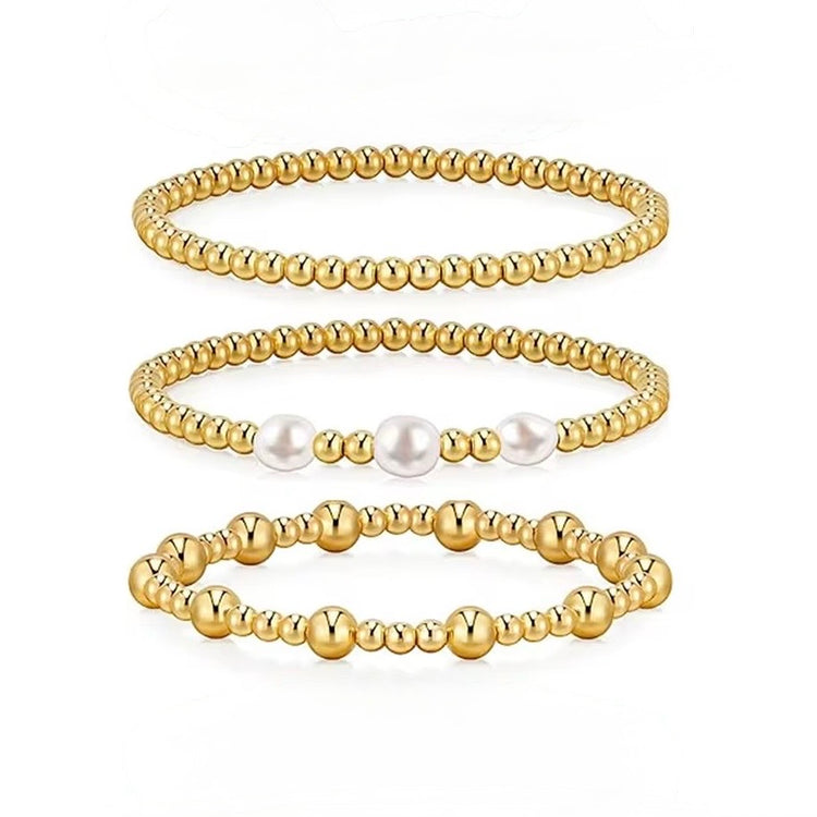 This Gold Filled Bead Bracelet Set is the perfect combination of elegance and durability. Made with gold filled beads and accented with a freshwater pearl, this set is waterproof so you can wear it every day. Upgrade your jewelry collection with this beautiful and functional bracelet set.