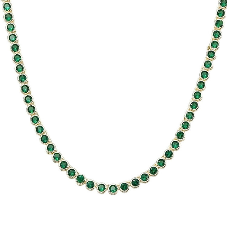 Green Diamond Tennis Chain Necklace - Gold Filled