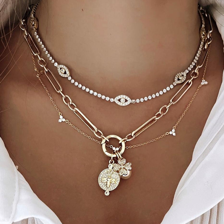 Elevate your style with our Queen Bee 3 necklace set. Made from high-quality materials, these three necklaces feature a stunning queen bee design, perfect for the fashion-forward individual. Add a touch of sophistication to any outfit with this set.