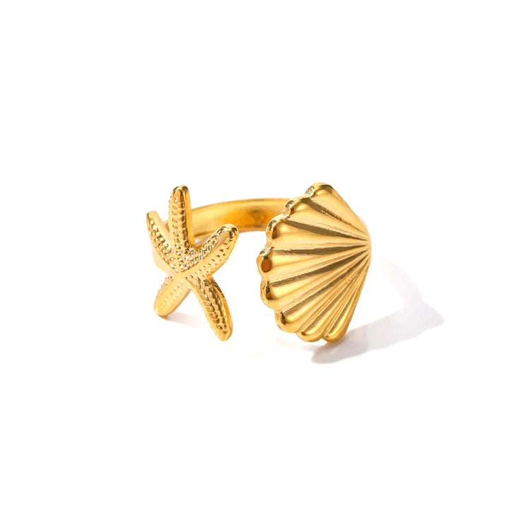 Elevate your style this summer with our elegant Seastar & Shell Ring in Gold Filled. This dainty ring features a beautifully detailed seastar and shell design, perfect for adding a touch of seaside charm to any outfit. Crafted with high-quality materials, it's the perfect accessory for any beach lover or fashionista.