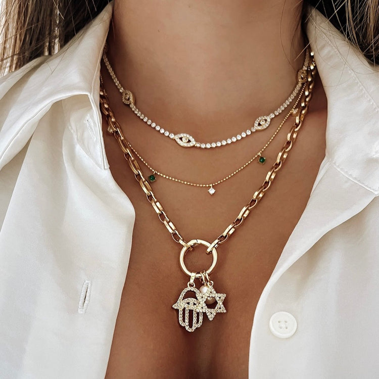 Star of David & Hamsa hand 3 necklace Set