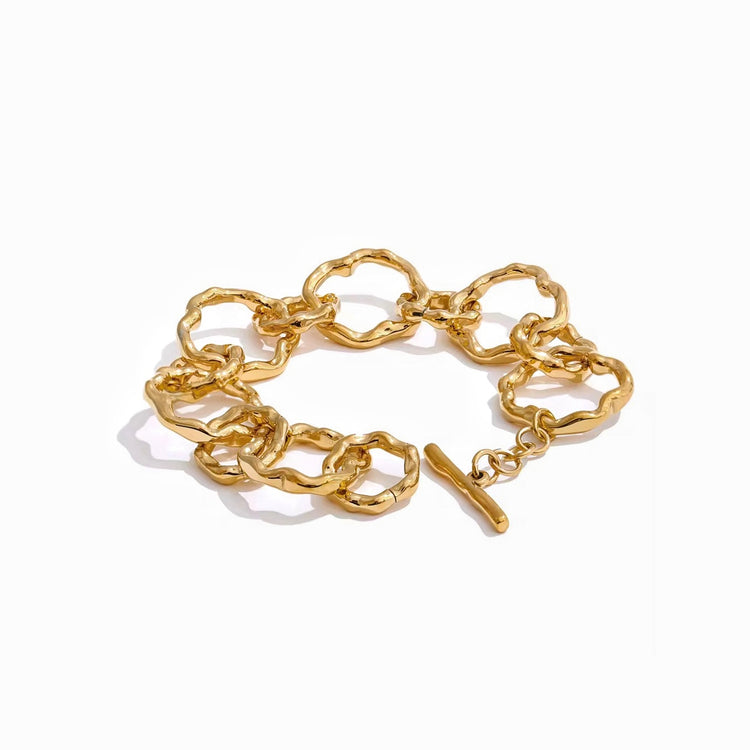 Upgrade your summer look with our Summer Chunky Chain Bracelet, crafted with high-quality gold filled material. This bracelet features a trendy chunky chain design that will elevate any outfit. Add a touch of style and glamour to your summer wardrobe with this must-have accessory.