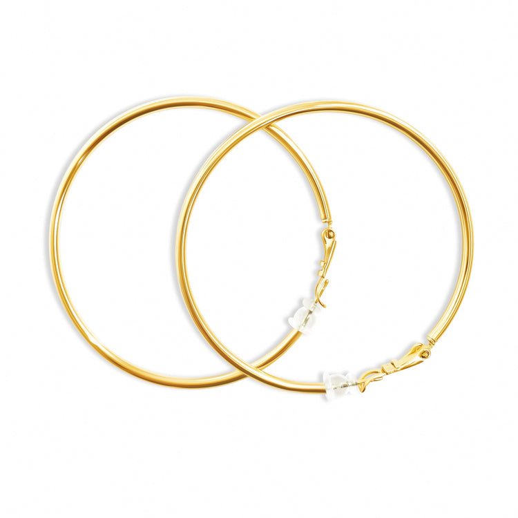Refresh your Ear Party looks with our classic The Elliott Hoops featuring a medium diameter for a statement style. These round tubular hoops keep secure with Omega backs and plastic stoppers, adding all-day comfort and wearability to their sleek design.