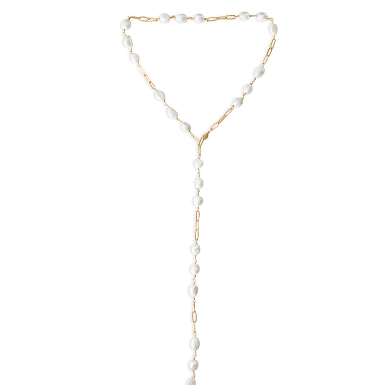 Mother of Pearl Long Chain Necklace - Gold Filled