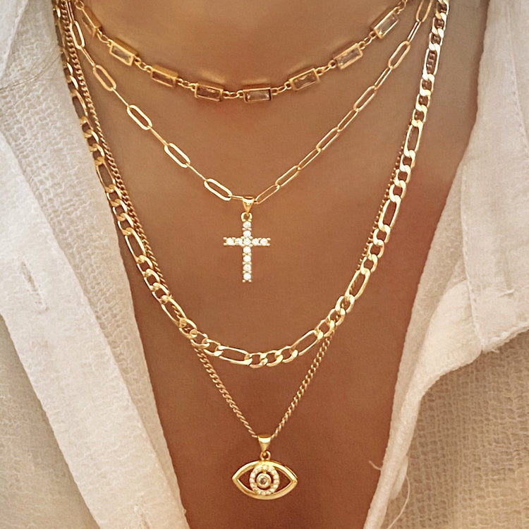 Radiate strength and inspire others with our mesmerizing Faith jewelry set. Each piece symbolizes unwavering belief and spiritual connection. Wear this exquisite collection as a reminder to stay strong and embrace the power of faith. This jewelry set features a curated bundle of our chain necklaces in graduated lengths, making them easy to wear together or separately. Celebrate universal love in different forms anytime with a classic, chic look.