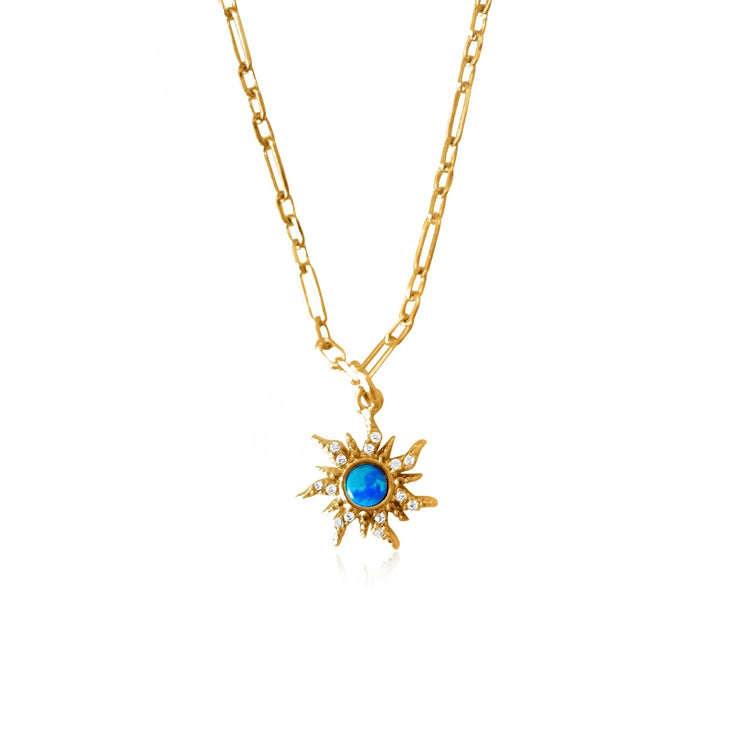 Introducing the Blue Ocean Sunburst Necklace, perfect for adding a touch of summer to any outfit. Made with gold filled material, this necklace features a stunning sunburst design inspired by the depths of the sea. Elevate your style and embrace the beauty of the ocean with this unique and elegant accessory.